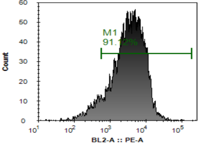 精子經過固定與通透處理后,試劑中的熒光蛋白偶聯鼠抗人唾液酸酶1NEU1)單克隆抗體特異性與精子唾液酸酶1NEU1)結合,通過儀器檢測到散射的熒光信號,觀察精子唾液酸酶1NEU1)染色情況。